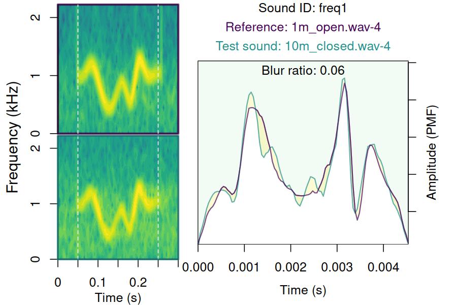 - When method 1 is used, the package will attempt to use re-recorded sounds from the shortest distance in the same transect as reference. However, if there is another re-recorded sound from the same ‘sound.id’ at a shorter distance in other transects, it will be used as reference instead. This behavior aims to account for the fact that in this type of experiments reference sounds are typically recorded at 1 m and at single transect.
