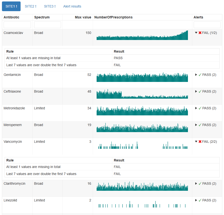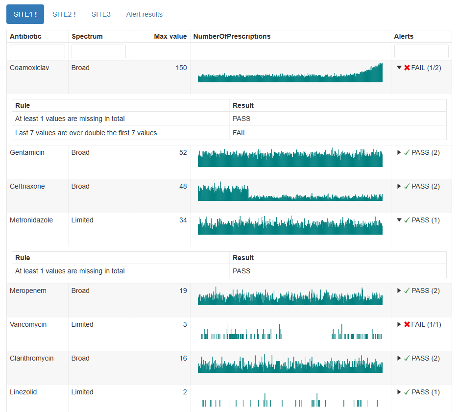 We can easily add a rule to test for any missing values. While we’re here, we will also add a custom rule to try to catch the fact that Coamoxiclav prescriptions have become much higher than they were at the start.